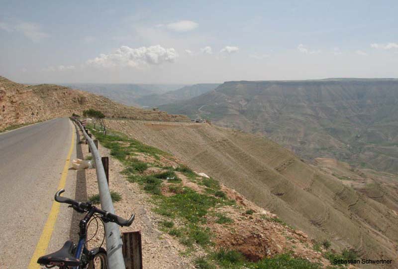 The first day of spring starts with blue skies and perfect weather. We have an early start and pedal along the King´s Highway south. We will have a long and hilly day to Dana. And the road out of Al Karak starts with a nice long hill. The traffic until Mazar is fairly heavy but after that we have the road mostly to ourselves. Only a few cars pass us honking. With Wadi Hassa we cross another 800 m deep canyon, but the climb on the other side is not as steep as Wadi Mujib. But here it is much warmer than further north. We reach the plateau at 1 p.m. In the first village school is out, which makes cycling a bit more strenous.